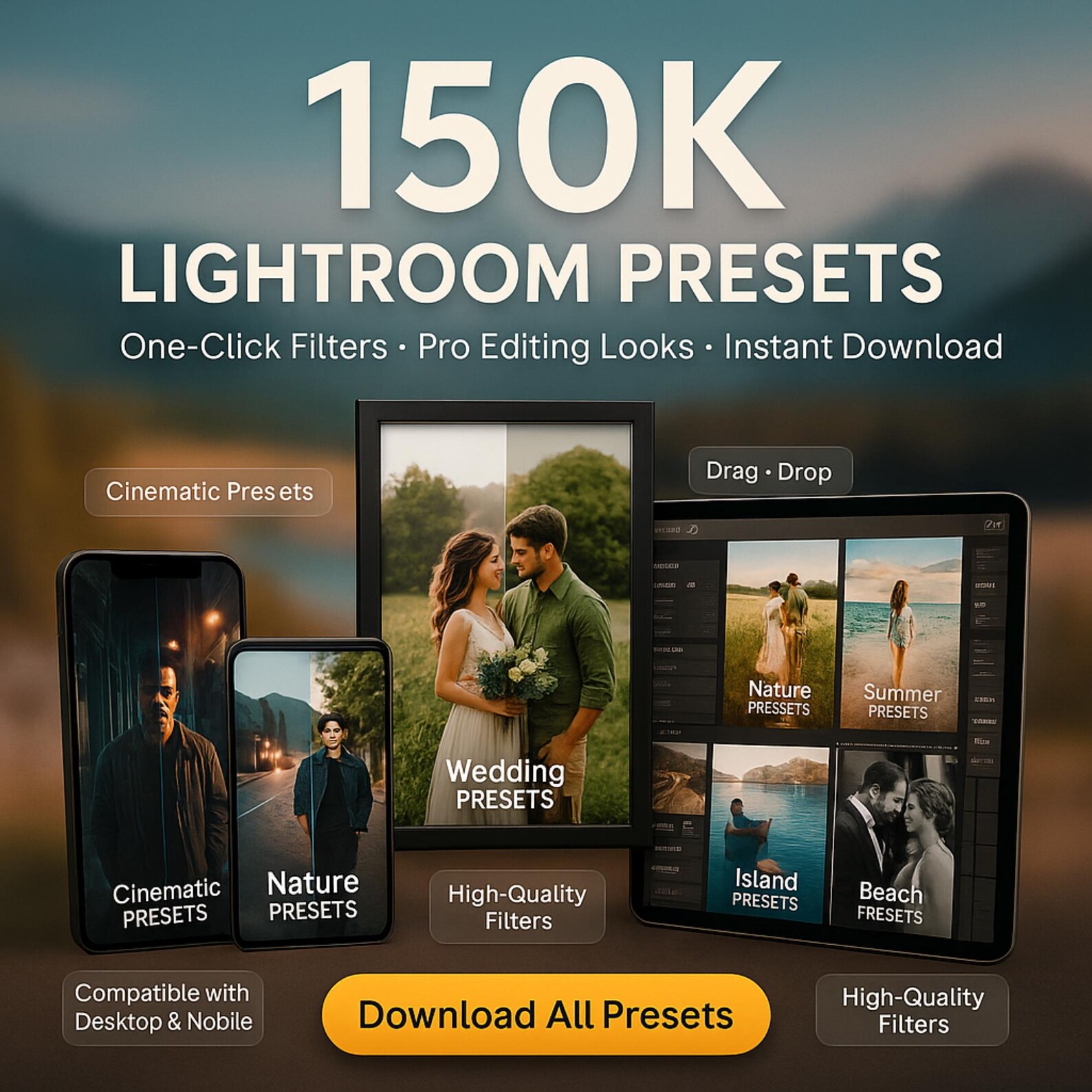 Take your photo editing to the next level with this 150k+ Lightroom Presets Bundle! Designed for photographers, influencers, and creatives, this comprehensive collection of Lightroom presets is perfect for both mobile and desktop use. Whether you want to create stunning landscapes, improve portrait photography, or enhance social media content, this bundle has it all.